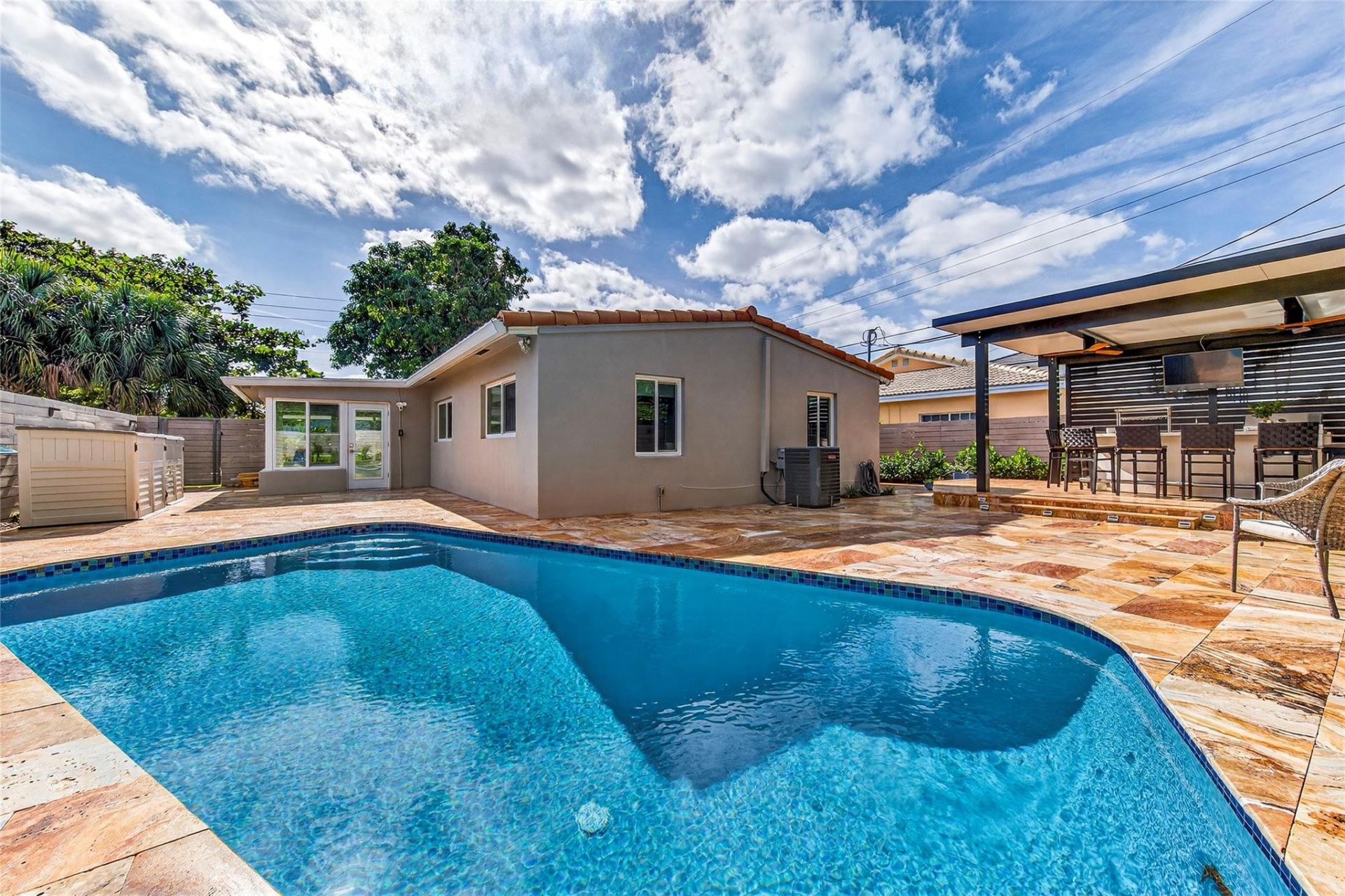 Beautiful 2 bed/2 bath with too many inside and exterior upgrades to list. Nestled in the heart of Poinsettia Heights its a must see!! Interior Upgrades offering: Kitchen Counters & Appliances, Bathrooms, HVAC system, Electrical, Washer/ Dryer, Walk in closets and bathrooms, freshly painted throughout, a true wood burning chimney!. Exterior: Hurricane Impact windows, New drain gutters, Pool area refinished/sealed, New pool motor, landscaping. Outdoor Kitchen- wine fridge, flat screen tv, blue to...Beautiful 2 bed/2 bath with too many inside and exterior upgrades to list. Nestled in the heart of Poinsettia Heights its a must see!! Interior Upgrades offering: Kitchen Counters & Appliances, Bathrooms, HVAC system, Electrical, Washer/ Dryer, Walk in closets and bathrooms, freshly painted throughout, a true wood burning chimney!. Exterior: Hurricane Impact windows, New drain gutters, Pool area refinished/sealed, New pool motor, landscaping. Outdoor Kitchen- wine fridge, flat screen tv, blue tooth speakers, fans, built in grill, sink, and recessed lighting, New landscaping and irrigation system, Outdoor lighting remote controlled, Driveway and roof recently pressure cleaned and sealed. Drive, walk or bike to beach it's so close. Nearby shopping also!