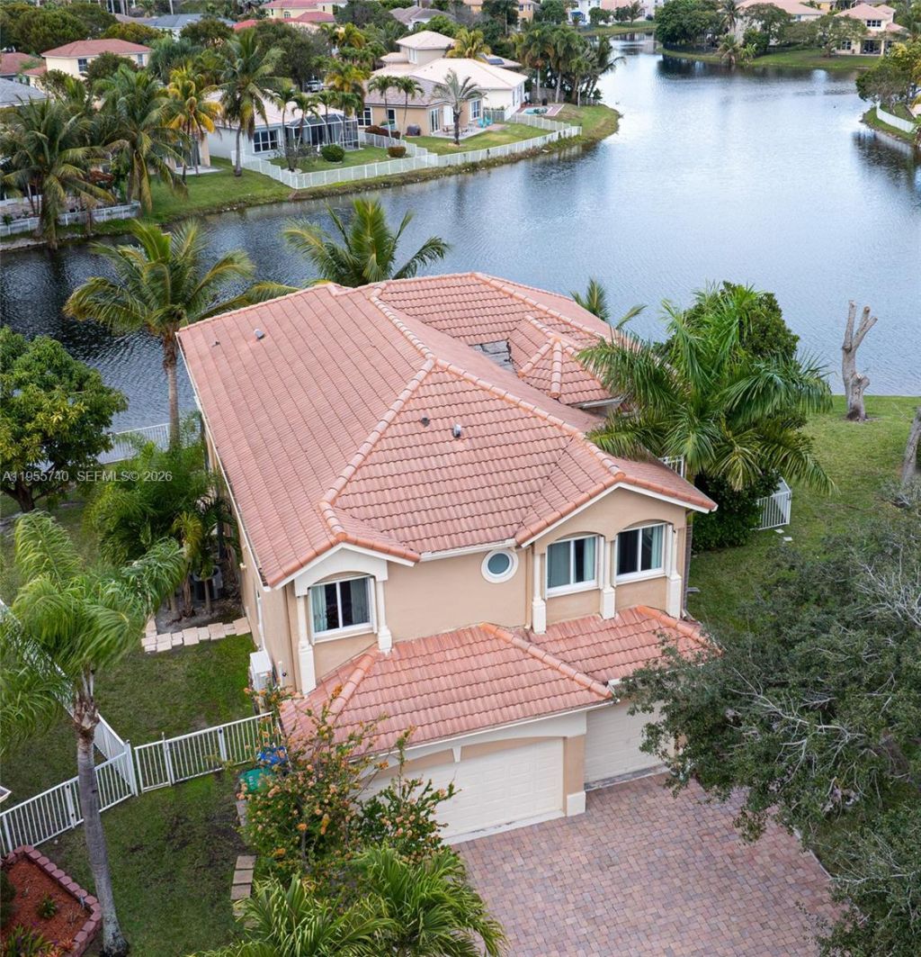 Welcome to your dream home, a beautifully remodeled 5-bedroom, 3-bathroom residence + Den, situated on a rare corner lot as the last home at the end of a quiet cul-de-sac, offering exceptional privacy and a true island-like feel.This stunning property is a private tropical oasis, featuring a resort-style saltwater pool complete with pool heater, app-controlled system, and water features?perfect for entertaining or relaxing year-round. Located in a well-maintained community with low HOA fees, thi...Welcome to your dream home, a beautifully remodeled 5-bedroom, 3-bathroom residence + Den, situated on a rare corner lot as the last home at the end of a quiet cul-de-sac, offering exceptional privacy and a true island-like feel.This stunning property is a private tropical oasis, featuring a resort-style saltwater pool complete with pool heater, app-controlled system, and water features?perfect for entertaining or relaxing year-round. Located in a well-maintained community with low HOA fees, this home delivers both luxury and peace of mind.Inside, the residence showcases fully remodeled bathrooms, a well-appointed kitchen, two spacious family rooms, and a formal dining area ideal for gatherings. The dramatic two-story living room with soaring ceilings creates an impressive first impression and is enhanced by a whole-home water filtration system and water softener, providing comfort and quality throughout.Additional upgrades include impact windows and doors, a 3-car garage with mini-split air conditioning?ideal for a gym, workshop, or climate-controlled storage?and impact-rated garage doors. Expanded exterior parking for 3 vehicles.With a tankless water heater, Brazilian wood flooring upstairs and new downstairs flooring (1 yr old), blending timeless elegance with modern functionality.With its exceptional lot placement, this home offers the rare experience of living like youre on a private island?while still enjoying the benefits of a welcoming community.