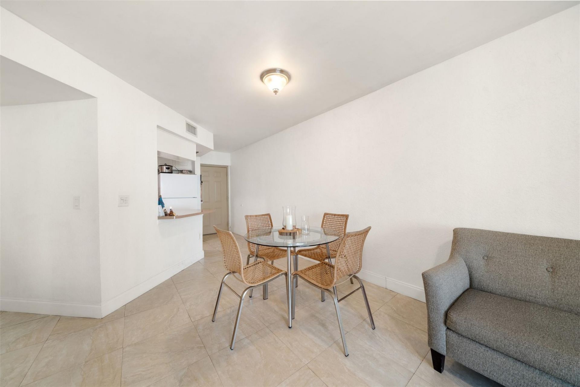 Freshly painted 1-bedroom, 1-bathroom condo offering a functional open layout. The unit features an open kitchen, tile floors throughout, bright living and dining areas, and an in-unit washer and dryer. A screened balcony overlooks green common areas, providing a pleasant outdoor space.Conveniently located near major roads, shopping, and services. Well-maintained community with strong rental potential, ideal for investors or owner-occupants. UNIT HAS HURRICANE SHUTTERS