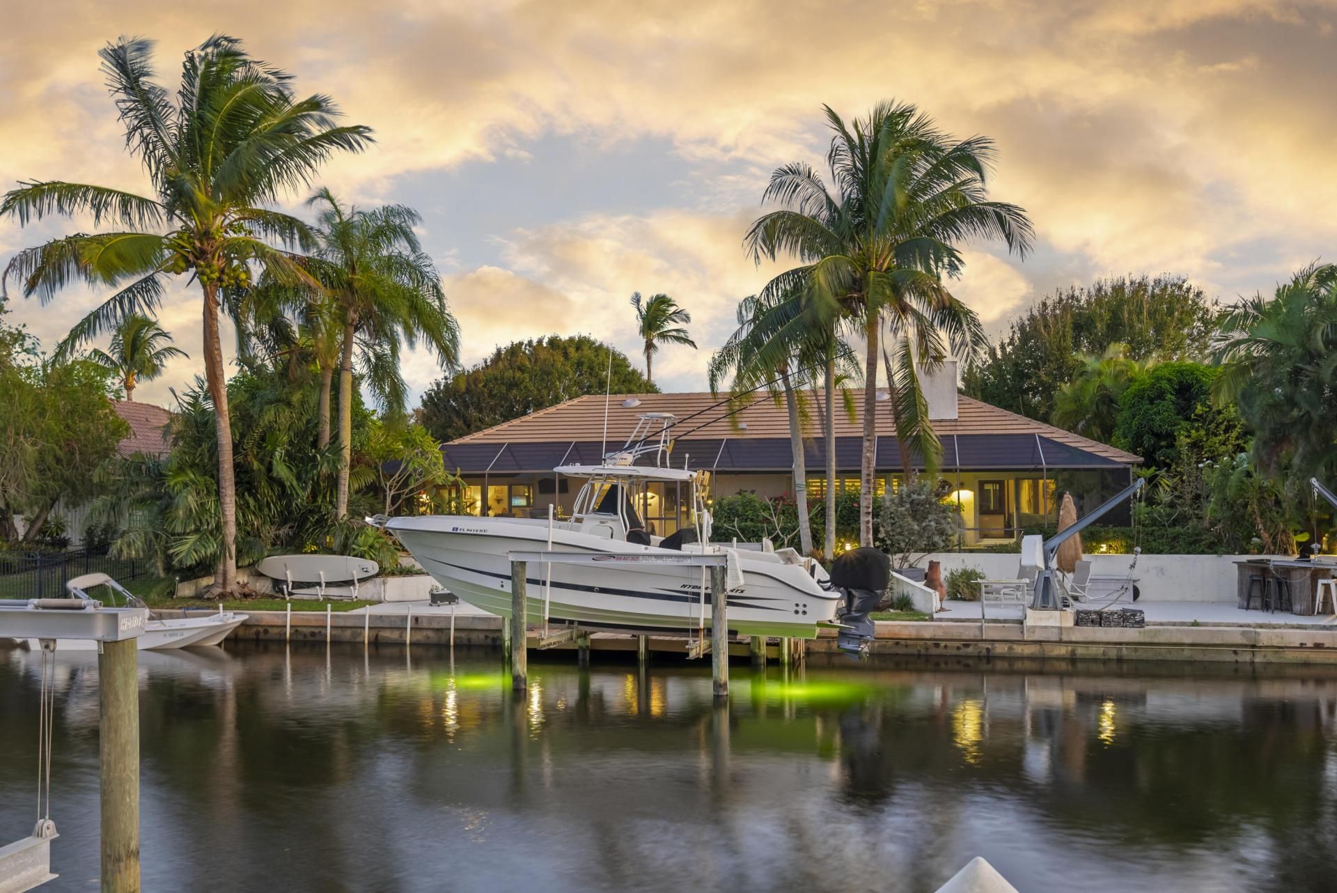 Edit mortgage details for a more accurate paymentClassic Florida Home with Waterfront Living. Welcome to 8859 SE Hawksbill Way, a perfect blend of coastal charm and modern convenience. This classic Florida home, nestled within lush, mature landscaping, offers a relaxed yet sophisticated lifestyle. The inviting entrance leads you to a quaint seating area, framed by beautiful French doors, setting the tone for the warmth and tranquility that awaits inside. Natural light pours in through large windows, illuminating the open living space, which features soaring vaulted ceilings that enhance the airy, spacious feel of the home. The newly remodeled kitchen (2018) is a chef's dream, and the home also boasts impact windows throughout (2018) and a new roof (2017) for added peace of mind. The true highlight of this property is the outdoor living space. The Shellock pavers surrounding the pool create a stylish, durable area for relaxation and entertainment. A 100-foot seawall lines the end of the canal, providing ample space for boat turnarounds. A 13,000-lb lift (installed in 2014) accommodates a sport fish boat, while davits are perfect for a skiff. The dock is outfitted with underwater fish lights, a fish cleaning station, and an outdoor bar area ideal for grilling and entertaining. Whether you're hosting a gathering, fishing, or simply enjoying the sunset, this waterfront oasis has it all. The Sounding community further enhances this lifestyle with desirable amenities, including a dog park, pickleball and tennis courts, a boat ramp, a community pool and clubhouse, and a storage yard for boats and RVs. This home offers direct access to the Intracoastal Waterway (ICW), perfect for boating, fishing, or simply taking in the beauty of the water. Just a 2-mile walk to the beach, you'll feel the ocean breezes and listen to the sound of the waves from your own backyard, making this the ideal location for those seeking the quintessential South Florida lifestyle. Hobe Sound, with its small-town charm, boutique shops, excellent schools (The Pine School), and vibrant community events, is a tranquil yet convenient spot to call home. Whether you're relaxing at home or exploring nearby Jupiter and Stuart, this is the perfect place to enjoy a laid-back lifestyle, surrounded by nature and convenience.